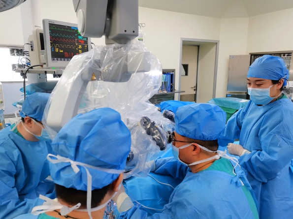 檢查結(jié)果出來后,孫國章主任醫(yī)師建議王女士行右側(cè)顳葉占位切除并行病理檢查。與家屬詳細(xì)交代手術(shù)的必要性及相關(guān)風(fēng)險(xiǎn),患者家屬表示知情同意行手術(shù)治療。術(shù)前準(zhǔn)備完畢后,孫國章主任醫(yī)師為王女士在全麻下進(jìn)行了右側(cè)顳葉占位切除+血腫清除術(shù),術(shù)中孫國章主任醫(yī)師在顯微鏡下仔細(xì)分離腫瘤組織與腦組織邊界,將腫瘤組織全切并將血腫全部清除,手術(shù)過程順利。王女士術(shù)后恢復(fù)良好,頭部CT復(fù)查顯示腫瘤完全切除,血腫清除徹底,病理回報(bào)為腦膠質(zhì)母細(xì)胞瘤,現(xiàn)已出院準(zhǔn)備進(jìn)行放化療等下一步綜合治療。