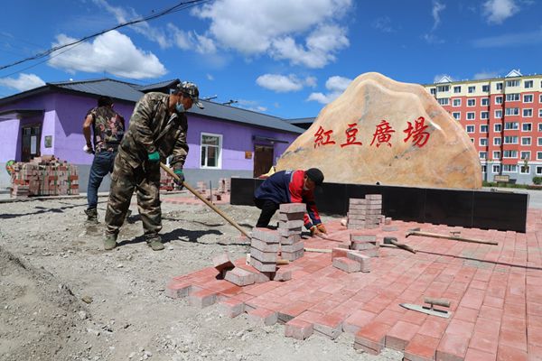 阿木爾林業(yè)局建設(shè)者改造紅豆廣場(chǎng)(王力 攝)