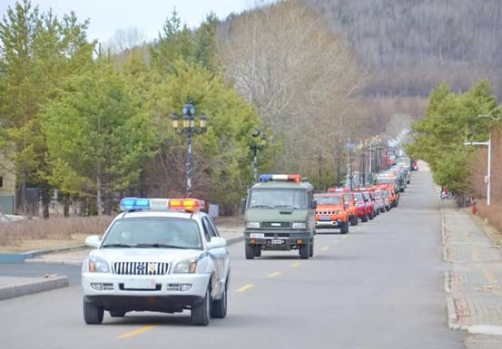 8時58分,在警笛的長鳴聲中,宣傳活動正式開始。由警車,森防運兵車、機具車等37臺車輛組成了聲勢浩大的巡游車隊,沿新林鎮(zhèn)人民路出發(fā)環(huán)城巡游,一路鳴笛警示,提高職工群眾防火意識,做到警鐘長鳴,擴大森林防火宣傳面。