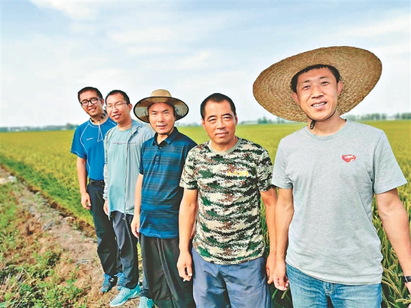 孫世臣等4位博士科技特派員為樺川縣創(chuàng)業(yè)鄉(xiāng)中山村引進高產(chǎn)龍稻田間指導(dǎo)。