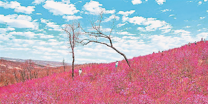 田野、山崗、江邊、林間、石縫……一種專屬紫色和粉色的優(yōu)美悄然而至。日前,黑河市愛輝區(qū)、孫吳縣、遜克縣、五大連池風(fēng)景區(qū)等地相繼迎來一年一度興安杜鵑花綻放的時(shí)節(jié)。在五大連池風(fēng)景區(qū),慕名而來的打卡網(wǎng)紅用拍攝制作短視頻或直播的方式,帶領(lǐng)各地網(wǎng)友一同欣賞景區(qū)的花開盛景,遜克縣還即將為此舉辦賞花節(jié)。