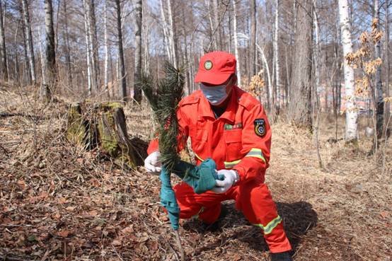 近日,新天林場生態(tài)黨支部組織黨員、積極分子,把越冬的“兩松”嫁接試驗苗上的防寒氈除掉,松綁后的“兩松”嫁接苗翠綠喜人,長勢良好。