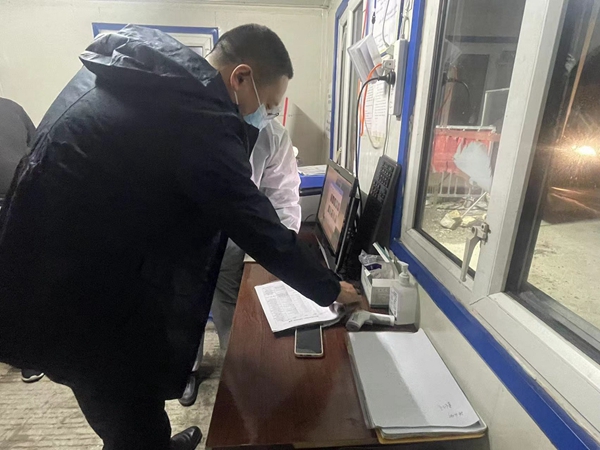 夜訪夜查工作組在公路卡口對(duì)入鎮(zhèn)人員信息、卡口消毒記錄、值班人員交接、值班人員是否在崗、是否飲酒等情況進(jìn)行突擊檢查。隨后,夜訪夜查工作組又來到消防隊(duì)值班室,現(xiàn)場(chǎng)隨機(jī)詢問了值班人員應(yīng)急處理程序,并對(duì)消防值班人員在崗和消防設(shè)施運(yùn)行等情況進(jìn)行檢查。