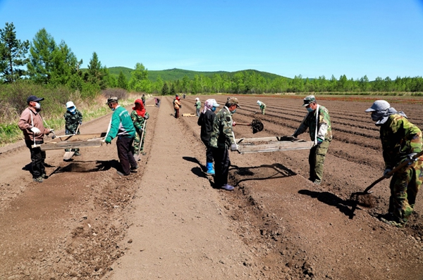 阿木爾林業(yè)局中心苗圃搶抓春播有利時機,直播落葉松(王力 攝)