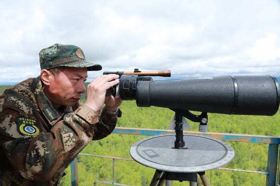 阿木爾林業(yè)局紅旗林場(chǎng)“阿08”瞭望塔瞭望員鄭巖住進(jìn)了增加保溫層的塔室,激發(fā)了工作熱情,正在密切瞭望,做到有火早發(fā)現(xiàn)、早報(bào)告(王力 攝)