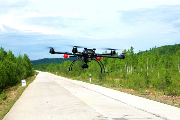 阿木爾林業(yè)局升起六旋翼無人機(jī)精準(zhǔn)核查火場(chǎng)情況(王力 攝)
