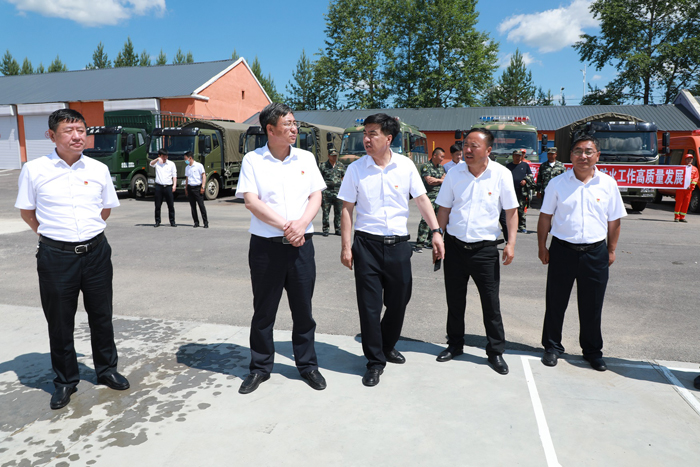 集團(tuán)森林防火辦黨委副書記、紀(jì)委書記、督查處長、工會主席回軍峰(中)深入到阿木爾林業(yè)局防火辦,點對點指導(dǎo)黨建共建工作(王力 攝)