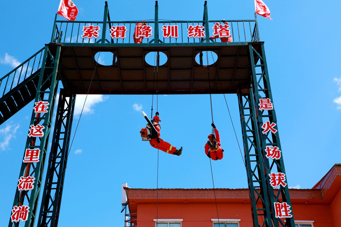 阿木爾林業(yè)局專業(yè)撲火隊員進(jìn)行索滑降訓(xùn)練(王力 攝)