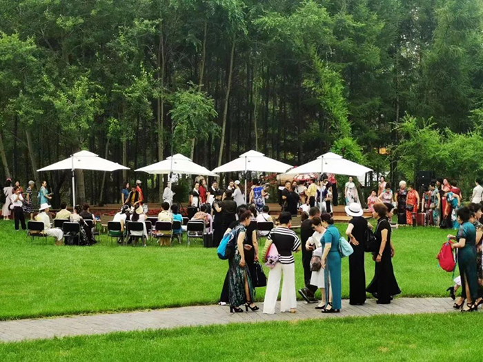 在文化創(chuàng)意園的核心位置,有一處面積為131.14平方米的半月狀森林舞臺。4000株大海棠花從2米高的創(chuàng)意作品啤酒筒潑灑而出,蜿蜒“流淌”。此景名為《森林飛花》,與森林舞臺交相呼應,相得益彰。