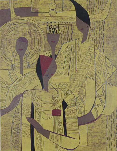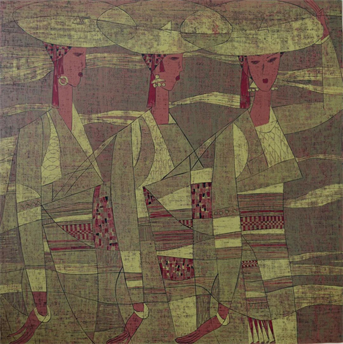 今日苗女圖 套色木刻(絕版) 48×65cm 1990年