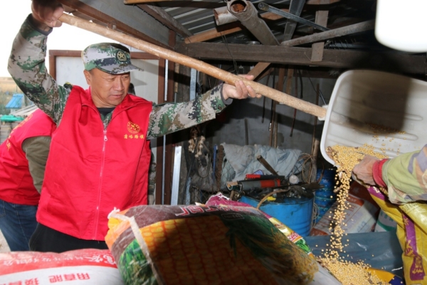 接著大家又來到明桂琴和程少和老人家中。在明桂琴老人家中,黨員同志們一走進(jìn)院子,正趕上老人家中的糧食沒有碼放好灑了一地,大家立刻七手八腳的把糧食收好裝入袋中。在隨后的座談慰問中,老人回想起這些年工作隊(duì)的同志們對(duì)自己的熱心幫扶,感動(dòng)得熱淚盈眶。