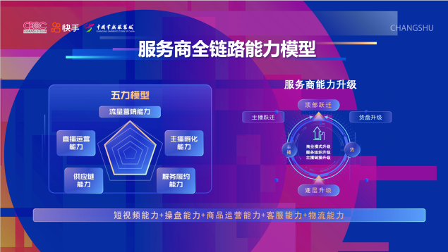 快手電商服務商則介紹了服務商全鏈路能力模型。針對商家主播能力弱、私域流量差、貨品不健全、投流ROI難提升等痛點,服務商可以發(fā)揮流量營銷、直播運營、主播孵化、供應鏈、服務履約等全鏈路能力,助力商家冷啟孵化和躍遷。自今年3月底常熟服飾產(chǎn)業(yè)帶落地至今,快手服務商已服務500多個常熟商家,常熟當?shù)乜焓謩愉N商家數(shù)提升30%+。