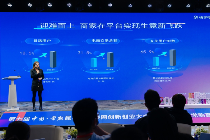 10月28日,由常熟市人民政府主辦,常熟市商務局和快手承辦的第七屆中國·常熟昆承湖互聯(lián)網(wǎng)創(chuàng)新創(chuàng)業(yè)大會在江蘇常熟舉行。快手第一屆常熟直播節(jié)也在會上同步啟動,會上,快手電商宣布未來將在常熟扶持10個千萬GMV新商家和100個百萬GMV新主播。