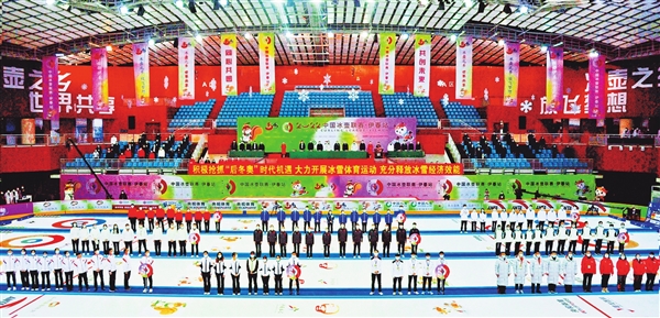 圖為2022中國冰壺聯(lián)賽(伊春站)開幕式現(xiàn)場。(胡錫韋/攝)