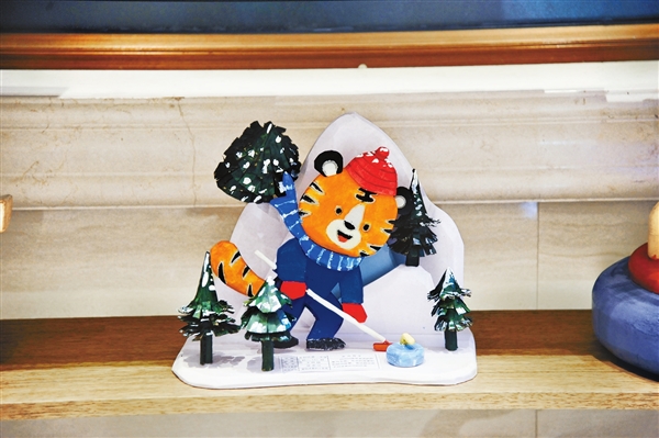 這是學生們制作的手工藝品“愛玩冰壺的小老虎”。(胡錫韋/攝)
