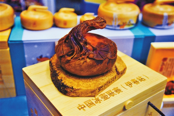 此次,美江木藝有限責(zé)任公司共展出了100余件產(chǎn)品,其中,最引人注目的瑞虎冰壺,由美江木藝公司為2022中國冰壺聯(lián)賽(伊春站)主題創(chuàng)作,最大直徑1.8米,總高度1.6米。主體壺身采用2022個(gè)小興安嶺山核桃做原料,壺蓋部分采用小興安嶺珍貴樹種紅松。作品構(gòu)思巧妙、用材獨(dú)特,既契合本次冰壺聯(lián)賽內(nèi)容,又充分體現(xiàn)了林都伊春、冰壺之鄉(xiāng)的地域特征。構(gòu)成壺身的2022個(gè)山核桃,寓意著2022年河山錦繡的小興安嶺,構(gòu)成壺蓋的興安紅松,蘊(yùn)含著華夏文明“鴻運(yùn)當(dāng)頭”的美好期許。此藝術(shù)品既體現(xiàn)伊春的森林文化藝術(shù)與競技體育相融合的發(fā)展理念,也展現(xiàn)了伊春的冰雪經(jīng)濟(jì)和木藝創(chuàng)意設(shè)計(jì)產(chǎn)業(yè)的發(fā)展成果。