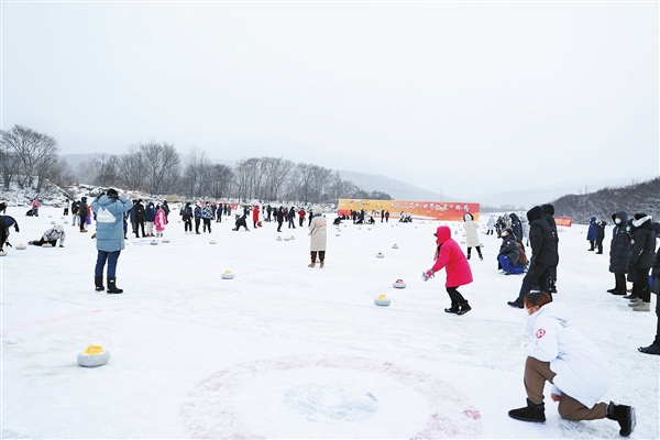 冰壺體驗(yàn)活動(dòng)現(xiàn)場。 (孟大春/攝)