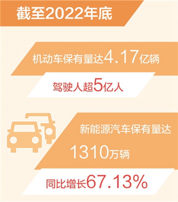 公安部11日發(fā)布統(tǒng)計(jì)顯示,2022年全國(guó)機(jī)動(dòng)車保有量達(dá)4.17億輛,其中汽車3.19億輛;全國(guó)機(jī)動(dòng)車駕駛?cè)诉_(dá)5.02億人,其中汽車駕駛?cè)?.64億人。2022年全國(guó)新注冊(cè)登記機(jī)動(dòng)車3478萬(wàn)輛,新領(lǐng)證駕駛?cè)?923萬(wàn)人。