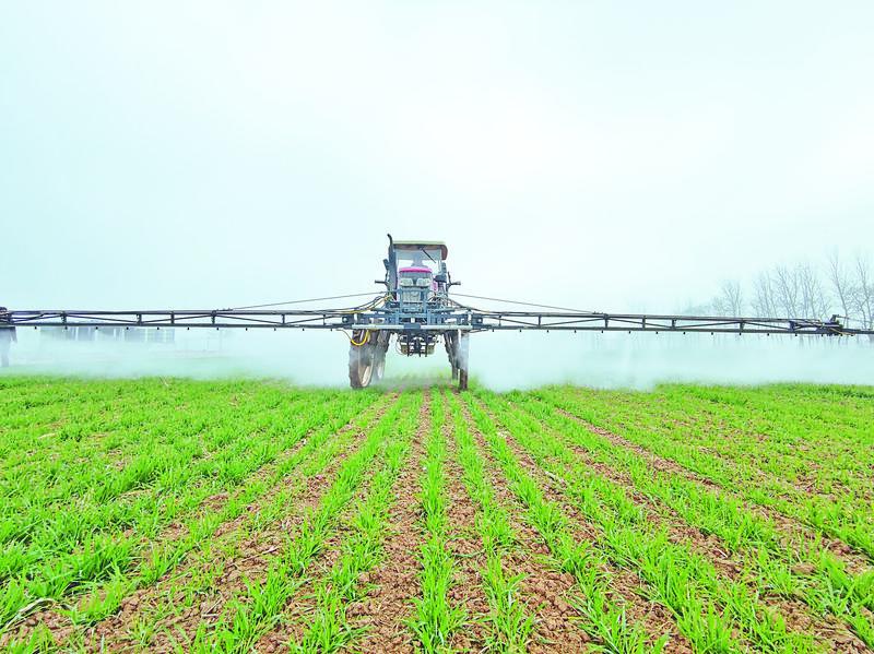小麥返青,植保作業(yè)正當時。在亳州市譙城區(qū)聶紅偉合作社的麥田旁,工作人員正在調(diào)試自走式打藥機,準備噴施除草劑?!斑@個‘大塊頭’一次可以裝2000斤的藥液,一天可以打上1000畝地?!焙献魃缲撠熑寺櫦t偉告訴記者,通過發(fā)展訂單農(nóng)業(yè),合作社帶動周邊農(nóng)戶種植小麥4萬畝。合作社現(xiàn)有各式農(nóng)機60余臺,可以為農(nóng)戶提供耕種收等全程機械化服務,農(nóng)戶每畝地產(chǎn)量可提升50斤至80斤,通過農(nóng)資農(nóng)服降本增效,農(nóng)戶畝均效益提高三四百元。