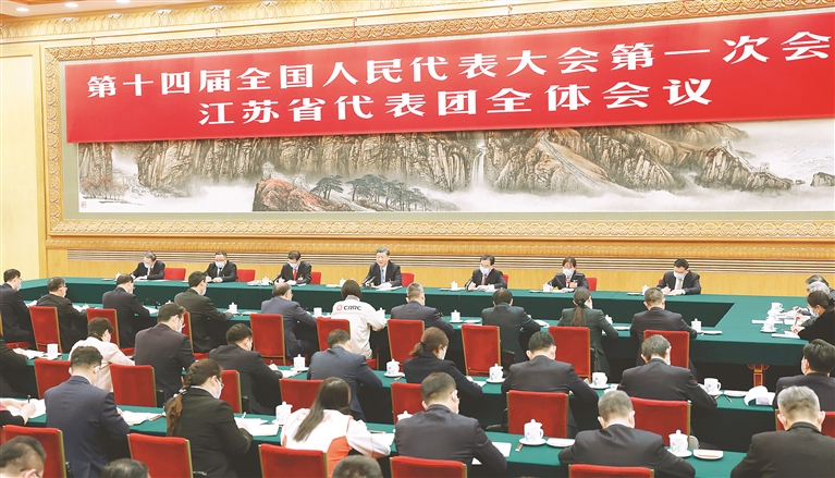 3月5日,中共中央總書記、國(guó)家主席、中央軍委主席習(xí)近平參加他所在的十四屆全國(guó)人大一次會(huì)議江蘇代表團(tuán)審議。