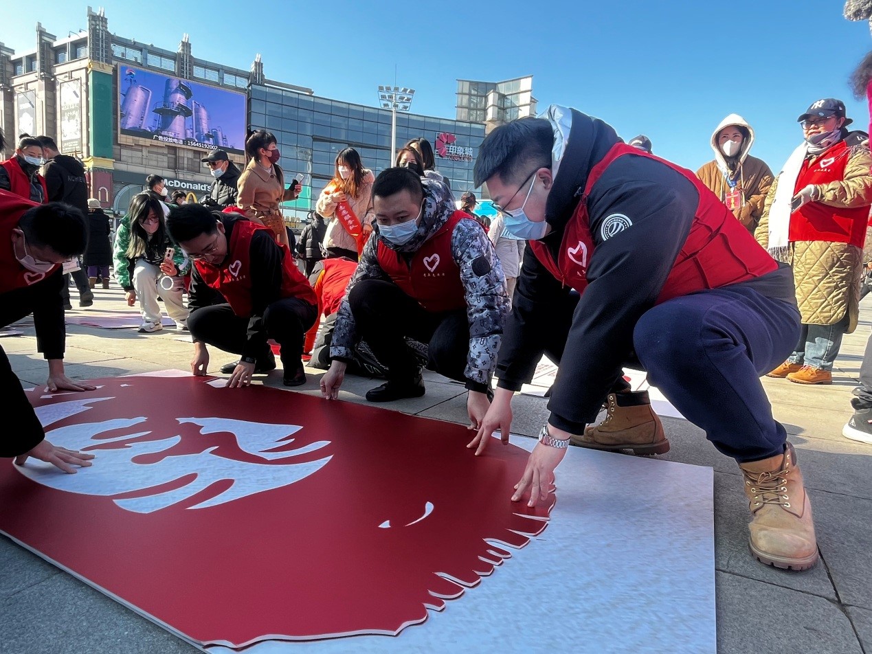 在會(huì)場(chǎng)的中間,一幅長(zhǎng)3.6米,寬3.6米的學(xué)習(xí)雷鋒主題拼畫,在黨員干部、青年志愿者和青少年的齊心協(xié)力下呈現(xiàn)出來(lái),展現(xiàn)了志愿者以實(shí)際行動(dòng)向雷鋒同志學(xué)習(xí),引導(dǎo)青少年積極向上,努力奮斗的精神風(fēng)貌。