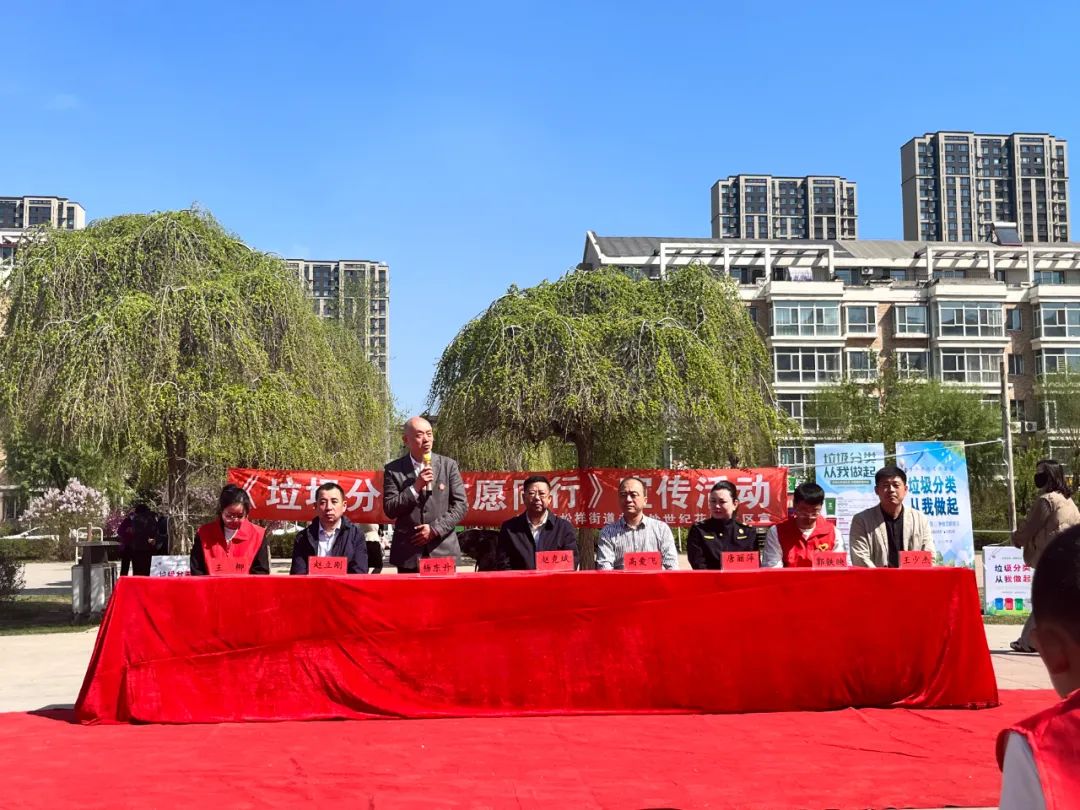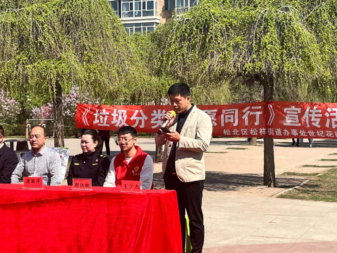 活動開場,松北區(qū)松祥街道辦事處世紀(jì)花園社區(qū)王少杰書記作了表態(tài)發(fā)言,作為垃圾分類監(jiān)督員、推廣員,要履行好自己的職責(zé),做好垃圾分類工作。通過公益活動宣傳,要把垃圾分好類,為環(huán)境保護(hù)做出自己的貢獻(xiàn)。同時也呼吁各位居民朋友自覺分類投放垃圾,共同為社區(qū)的環(huán)境貢獻(xiàn)自己的一份力量。