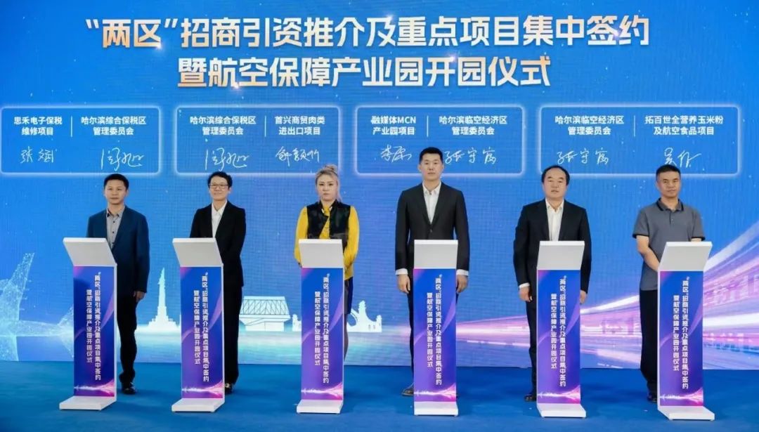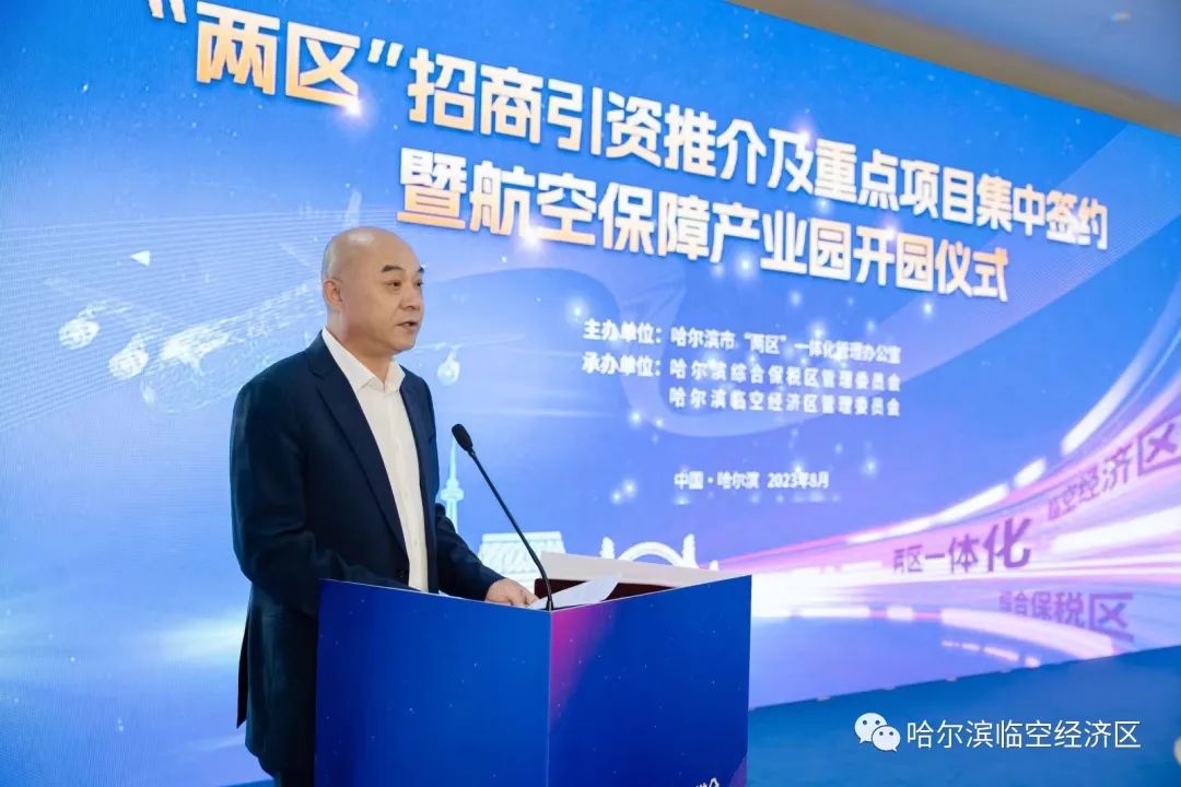 “兩區(qū)”管委會領導分別對哈爾濱綜合保稅區(qū)與哈爾濱臨空經(jīng)濟區(qū)重點園區(qū)、營商環(huán)境、產(chǎn)業(yè)政策等特色優(yōu)勢作招商推介,誠邀五湖四海的客商朋友來“兩區(qū)”投資興業(yè)、共商發(fā)展,吸引和促進優(yōu)質資源和高端要素匯聚“兩區(qū)”。哈爾濱臨空經(jīng)濟區(qū)航空保障產(chǎn)業(yè)園在全體來賓的見證下正式啟動,該園總建筑面積12萬平方米,總投資5.6億元,重點發(fā)展航空總部經(jīng)濟、航空制造產(chǎn)業(yè)、航空物流產(chǎn)業(yè)、臨空制造產(chǎn)業(yè)以及航空服務、航空食品等產(chǎn)業(yè),致力打造為哈爾濱臨空經(jīng)濟區(qū)發(fā)展現(xiàn)代制造業(yè)的新名片,成為國內(nèi)知名的航空保障產(chǎn)業(yè)集群。
