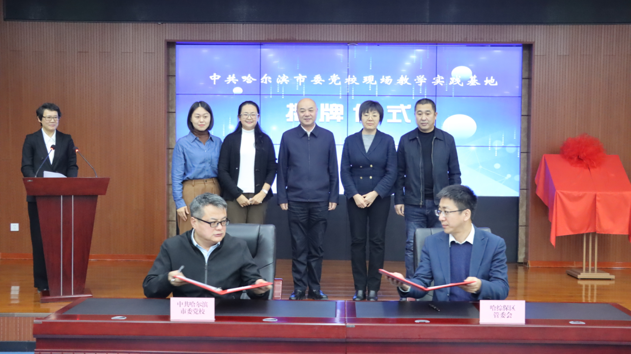 黑龍江經(jīng)濟(jì)網(wǎng)訊(記者商祺)12月13日,哈爾濱綜合保稅區(qū)與哈爾濱市委黨校舉行現(xiàn)場(chǎng)教學(xué)實(shí)踐基地揭牌儀式,哈爾濱市政府副秘書(shū)長(zhǎng)、兩區(qū)一體化辦公室主任、哈爾濱綜合保稅區(qū)管理委員會(huì)主任尹承云與中共哈爾濱市委黨校常務(wù)副校長(zhǎng)、市行政學(xué)院院長(zhǎng)孫蕊共同為現(xiàn)場(chǎng)教學(xué)實(shí)踐基地揭牌。哈爾濱市委黨校副校長(zhǎng)孫昭與哈爾濱綜合保稅區(qū)管理委員會(huì)常務(wù)副主任邸凱代表雙方簽署合作協(xié)議。