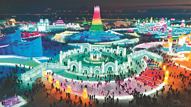“震撼,刺激!”采訪過(guò)程中,不少游客這樣總結(jié)冰雪大世界之行。因?yàn)槊谰岸械秸鸷?,乘?21米超長(zhǎng)大滑梯體驗(yàn)到風(fēng)馳電掣的刺激……這個(gè)冰雪季,以“龍騰冰雪 逐夢(mèng)亞冬”為主題的第二十五屆哈爾濱冰雪大世界為八方游客準(zhǔn)備了一場(chǎng)集沉浸體驗(yàn)、旅游觀光、賞冰樂(lè)雪為一體的冰雪盛宴,這必定是一段令人難忘的冰雪旅程。