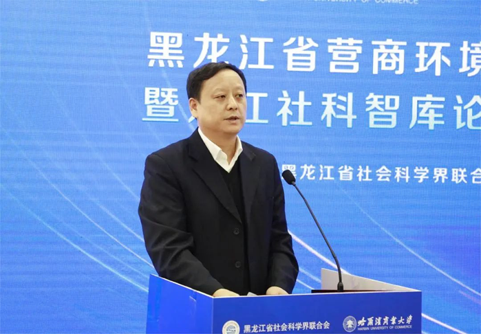 哈爾濱商業(yè)大學(xué)經(jīng)濟(jì)學(xué)院院長(zhǎng)韓平主持龍江社科智庫論壇——“優(yōu)化營(yíng)商環(huán)境 建設(shè)誠(chéng)信龍江”主題論壇。
