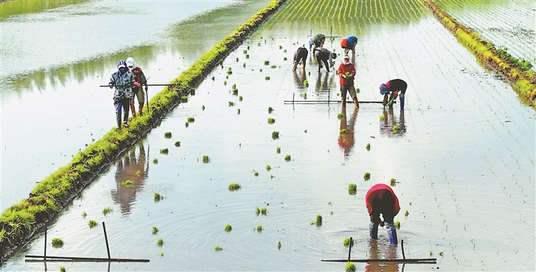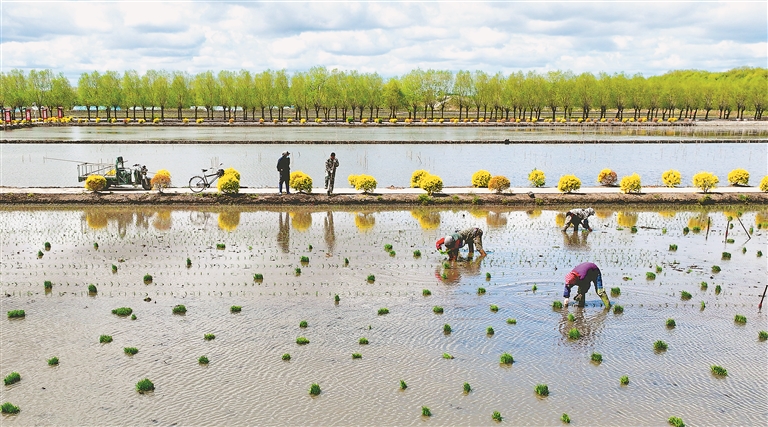 立夏過后,黑土地正式迎來水稻移栽好時(shí)節(jié),一排排秧苗整齊地挺立在田間,為稻田鋪上了“新綠”。在綏化市北林區(qū)國(guó)家級(jí)水田示范區(qū)國(guó)家級(jí)區(qū)域性良種繁育基地,這里正采用人工插秧的方式,繁育寒地香米品種。今年,北林區(qū)水稻預(yù)計(jì)種植面積108萬畝,寒地香米系列品種覆蓋95%以上。