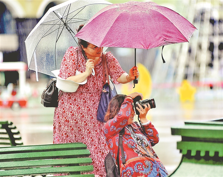 5日,芒種。當(dāng)天,哈爾濱市迎來降雨天氣,雨水洗凈了整座城市,也帶來了清涼,出行的人們在雨中不忘拍照賞景。
