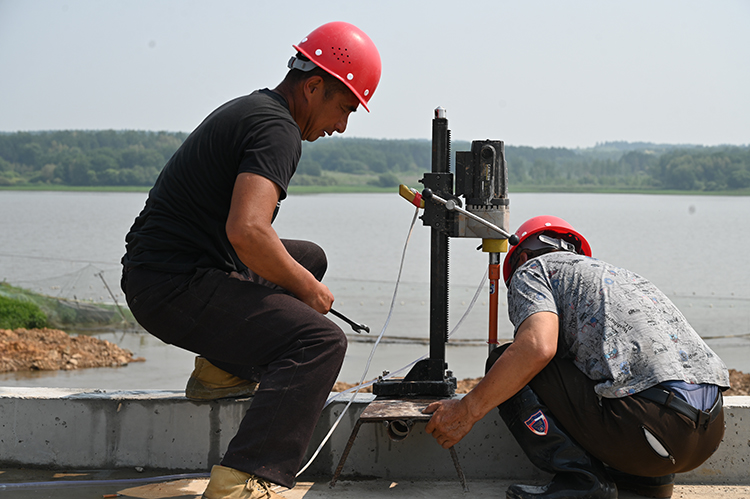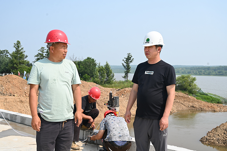 在引龍河農(nóng)場(chǎng)有限公司青年水庫(kù)除險(xiǎn)加固工程施工現(xiàn)場(chǎng),機(jī)器轟鳴,施工現(xiàn)場(chǎng)對(duì)大壩固腳及安全圍欄施工作業(yè),增強(qiáng)壩基防滲能力,消除大壩防洪隱患。同時(shí)與施工、設(shè)計(jì)部門一同研究,采用增設(shè)防滲膜圍堰措施,加快施工進(jìn)度,制定了趕工計(jì)劃,倒排工期,確保汛限水位以下部分在主汛期來臨前全部完成。此外,現(xiàn)場(chǎng)還有督導(dǎo)組對(duì)水庫(kù)除險(xiǎn)加固工程進(jìn)行檢查。
