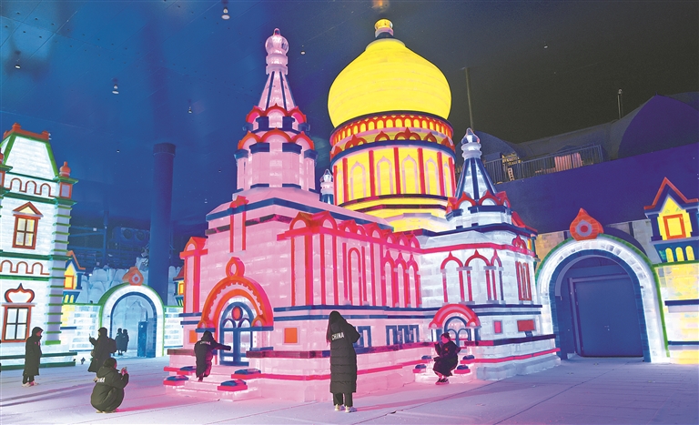 游客在伏天里走進(jìn)哈爾濱冰雪大世界夢(mèng)幻冰雪館,穿著厚厚的外套,打卡一座座美輪美奐的冰雕雪塑,體驗(yàn)-12℃的浪漫。據(jù)工作人員介紹,自夢(mèng)幻冰雪館開(kāi)館以來(lái),前來(lái)參觀(guān)的游客眾多,換衣處一直處于排隊(duì)狀態(tài),人數(shù)最多時(shí)要排出近百米。
