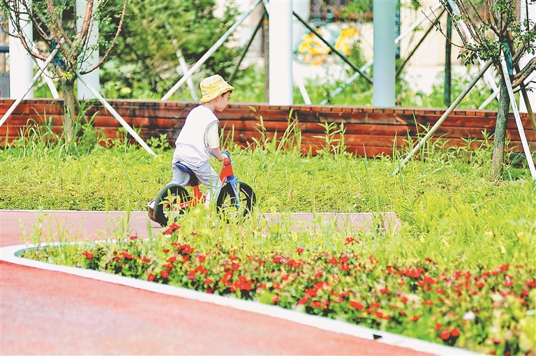 圖①:一名兒童在園內(nèi)騎自行車。