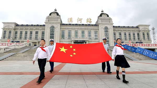 黑龍江經濟網訊(王丹陽)8月16日上午,由全國少工委聯合中國載人航天工程新聞宣傳辦公室舉辦的“紅領巾愛祖國——我心中的五星紅旗”國旗傳遞活動(黑龍江漠河站)在漠河市北極鎮(zhèn)中心小學舉行。來自全省各地的少先隊員代表、輔導員代表、漠河市黨政軍警民代表、西部計劃志愿者共計100余人參加活動。