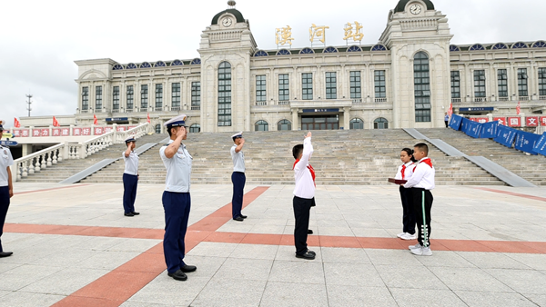 在國旗下,漠河市邊境檢查站代表陳澤和“全區(qū)十佳駐村干部”王成龍用自己生動的故事為在場的每位少先隊員們上了一堂生動的國防教育課,漠河市的少先隊員代表王涵在國旗下表達了對祖國的熱愛和對戍邊工作者們的敬佩。團省委副書記陳海萍在講話中鼓勵少先隊員要學習漠河戍邊工作者們的堅韌不拔和無私奉獻,要立足祖國最北方志存高遠、勤奮學習、錘煉品德、強健體魄,敢于創(chuàng)新、富于創(chuàng)意、樂于創(chuàng)造,要沿著“入隊、入團、入黨”的“人生三部曲”奮力前進,為推進中國式現代化、實現強國復興偉業(yè)貢獻青春力量。