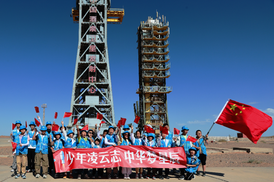 “50多年前,在如此環(huán)境惡劣、技術(shù)薄弱和設(shè)施簡(jiǎn)陋的情況下,中國(guó)就是在這里,把我們的第一顆衛(wèi)星 ‘東方紅一號(hào)’送上了太空?!?在鋪滿黃沙的茫茫戈壁上,孩子們正在全神貫注地聽(tīng)講解員介紹中國(guó)航天事業(yè)的輝煌歷程,眼前是經(jīng)過(guò)歲月洗禮依然矗立的東方紅衛(wèi)星發(fā)射塔。