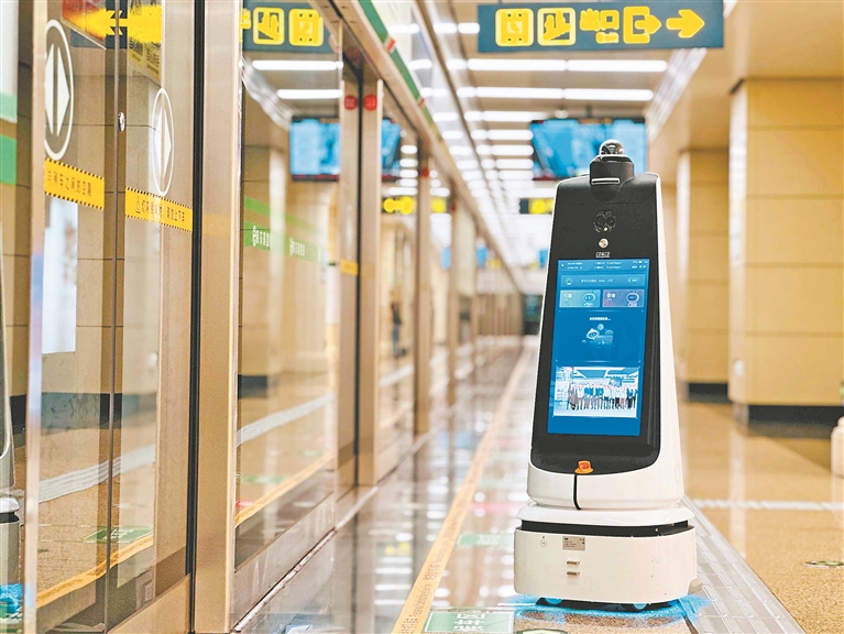 站務(wù)服務(wù)機(jī)器人、巡檢機(jī)器人穿梭人群中開展服務(wù),這些以往只存在科幻電影中的一幕幕,日前在哈爾濱地鐵上演。隨著科技進(jìn)步,市民能在地鐵中看到越來(lái)越多的智慧交通應(yīng)用場(chǎng)景。目前,哈爾濱地鐵在個(gè)別車站創(chuàng)新試點(diǎn)應(yīng)用各類機(jī)器人設(shè)備,提升乘客出行體驗(yàn)。