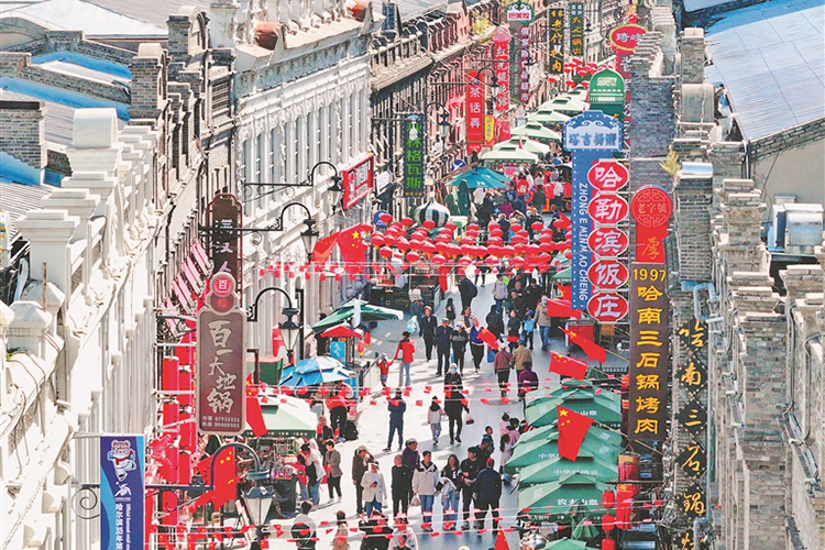 哈爾濱道外中華巴洛克歷史文化街區(qū)人潮涌動(dòng)。本報(bào)記者 張澍攝