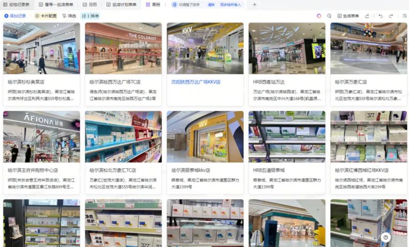 線(xiàn)下巡店工作能最大程度保障各終端貨品銷(xiāo)售質(zhì)量。過(guò)去,由于巡店工作涉及外出出差,巡店照片數(shù)據(jù)手機(jī)端無(wú)法操作整理匯總,影響問(wèn)題處理時(shí)效且增加無(wú)用工作量?,F(xiàn)在敷爾佳運(yùn)用飛書(shū)表單移動(dòng)端操作,隨時(shí)上傳巡店結(jié)果及照片,表格儀表盤(pán)視角可以查看數(shù)據(jù)并進(jìn)行一段時(shí)間內(nèi)的環(huán)比、同比分析,基于數(shù)據(jù)分析做任務(wù)下達(dá),一次巡檢從發(fā)現(xiàn)問(wèn)題到整改問(wèn)題的全流程都能包攬,對(duì)于每位巡檢員來(lái)說(shuō),每天至少節(jié)省2.5小時(shí)數(shù)據(jù)統(tǒng)計(jì)時(shí)間,同時(shí)更清晰的了解每個(gè)督導(dǎo)的外出工作情況 。此外,查貨溯源沒(méi)有系統(tǒng)的數(shù)據(jù)存檔,多個(gè)渠道數(shù)據(jù)無(wú)法同步,無(wú)數(shù)個(gè)sheet篩選查詢(xún)數(shù)據(jù),容易出錯(cuò)?,F(xiàn)在,運(yùn)用多維表格協(xié)同操作,多個(gè)維度查看所需數(shù)據(jù),所有查貨情況能被沉淀和實(shí)時(shí)查看。