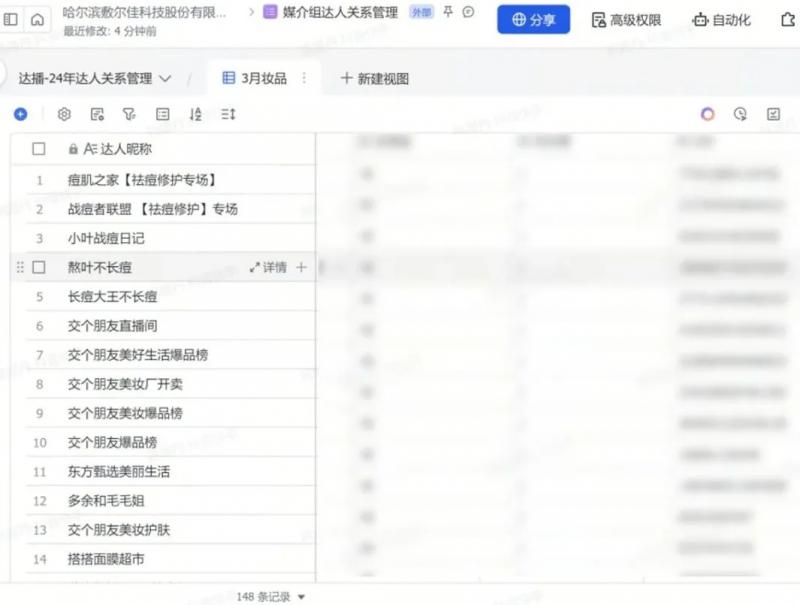 由于器械字號(hào)產(chǎn)品的特殊性,現(xiàn)在敷爾佳通過(guò)飛書(shū)在線(xiàn)文檔審批達(dá)人,將達(dá)人數(shù)據(jù)填寫(xiě)上報(bào),上級(jí)在線(xiàn)同步審批達(dá)人,跟進(jìn)確定合作。直播中,用飛書(shū)云盤(pán)儲(chǔ)存資料,將達(dá)播錄屏,產(chǎn)品資料等數(shù)據(jù),同步云盤(pán),方便各部門(mén)查看,調(diào)取相關(guān)資料。直播后,利用飛書(shū)多維表格將達(dá)人信息,合作傭金,產(chǎn)出 GMV,對(duì)接人等重要信息歸攏一起,形成多維表格方便組織內(nèi)互相查閱填寫(xiě), 通過(guò)儀表盤(pán)的功能體現(xiàn)出哪些達(dá)人是優(yōu)質(zhì)合作達(dá)人,并為二次投放合作提供了參考價(jià)值。