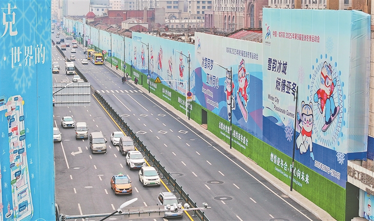11月14日,哈爾濱市道外區(qū)景陽(yáng)街上,一幅幅2025年亞冬會(huì)內(nèi)容的噴繪畫(huà)亮相,組成生動(dòng)精彩的亞冬畫(huà)廊。