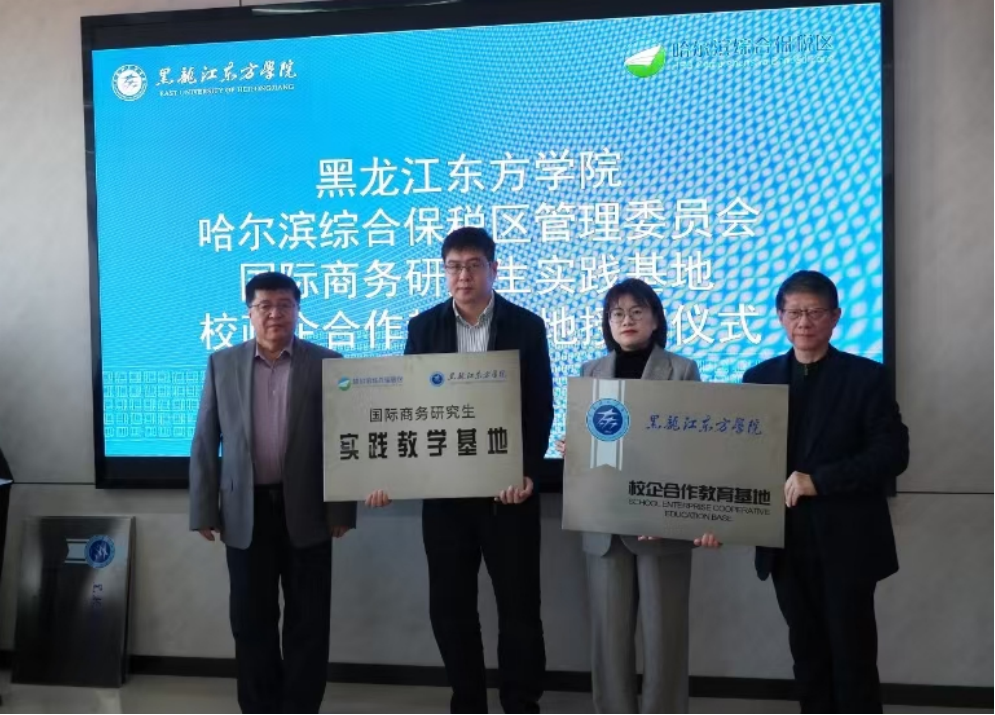 黑龍江經(jīng)濟(jì)網(wǎng)訊(記者李凌雪)11月20日,哈爾濱綜合保稅區(qū)與黑龍江東方學(xué)院舉行校政企產(chǎn)教研發(fā)展戰(zhàn)略合作協(xié)議簽約授牌儀式。哈爾濱綜合保稅區(qū)副主任張旭與黑龍江東方學(xué)院副校長(zhǎng)程延江共同為國(guó)際商務(wù)研究生實(shí)踐基地、校企合作教育基地授牌并簽署合作協(xié)議。