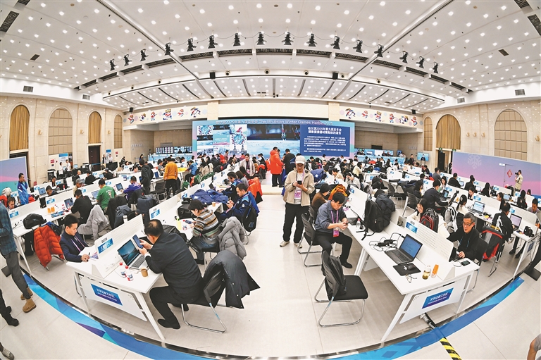 第九屆亞冬會主媒體中心(MPC)分為主新聞中心和國際廣播中心兩個部分,為注冊媒體記者和轉(zhuǎn)播商的工作提供保障服務。亞冬會開幕后,MPC里就坐滿了來哈爾濱采訪的各國記者,他們在這里寫稿,向各地發(fā)送有關亞冬會的最新信息和比賽結(jié)果,他們也在這里相互交流,成為異國朋友。