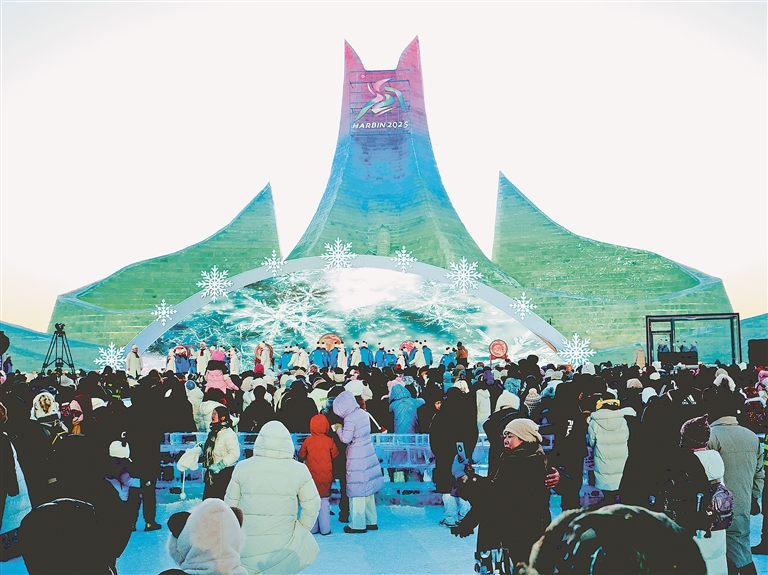 精美與靈動(dòng)相互交織,園區(qū)內(nèi)亞冬會(huì)氛圍濃厚?!拔覀?cè)趫@區(qū)內(nèi)看到很多亞冬會(huì)元素的冰雪景觀,像雪雕‘濱濱’‘妮妮’、會(huì)徽大地景觀等,準(zhǔn)備逐個(gè)打卡。”山東游客許多開心地說。