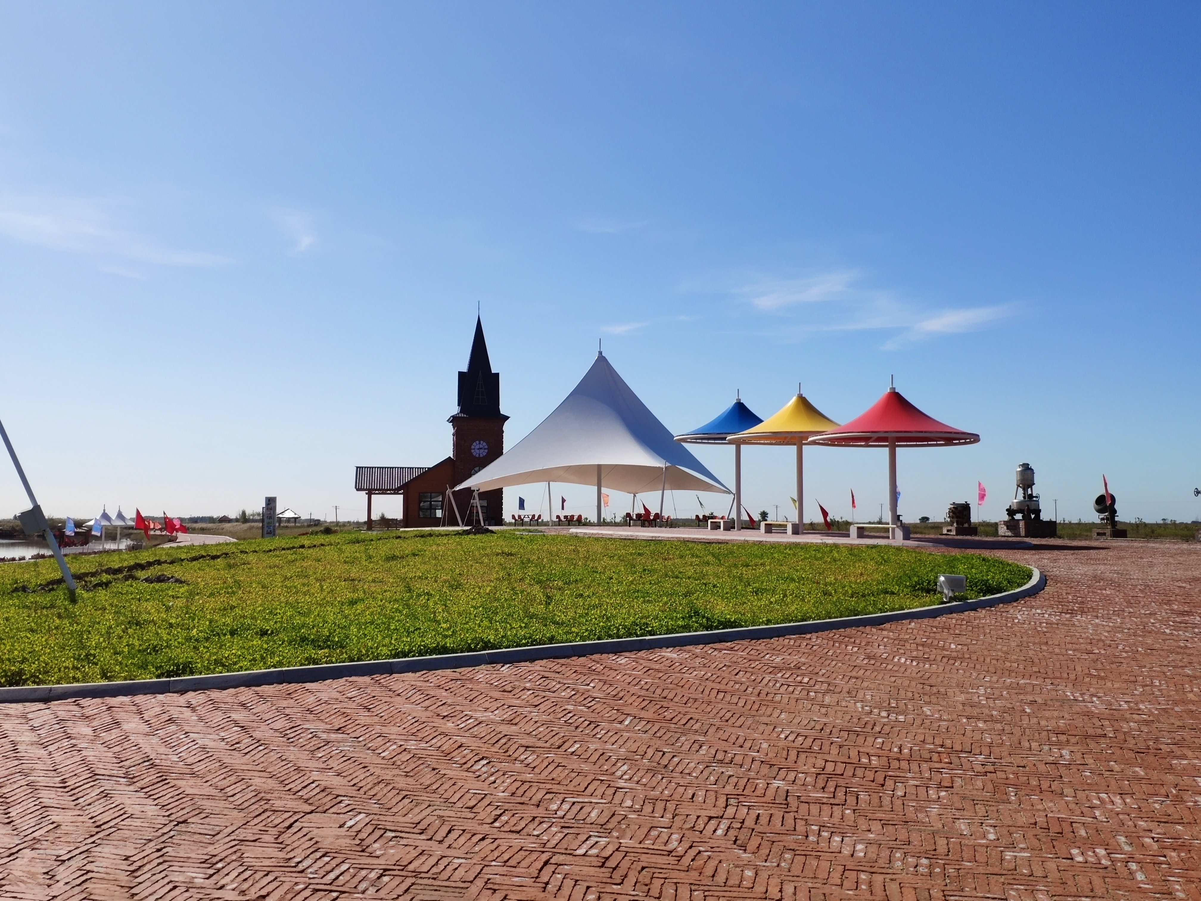 傳統(tǒng)文化廣場(chǎng)以金代文化為主題,廣場(chǎng)中央矗立著仿古城墻雕塑,兩側(cè)設(shè)有民俗展覽館,仿古建筑群與小橋流水相映成趣。休閑廣場(chǎng)以現(xiàn)代簡約風(fēng)格設(shè)計(jì),配備智能健身器材和兒童游樂區(qū),設(shè)有秋千群、帳篷營地,家庭游客可在此野餐、嬉戲。而在位于濕地制高點(diǎn)的觀景廣場(chǎng),可俯瞰湖光山色。夕陽西下時(shí),霞光與候鳥齊飛,成為網(wǎng)紅打卡點(diǎn)。