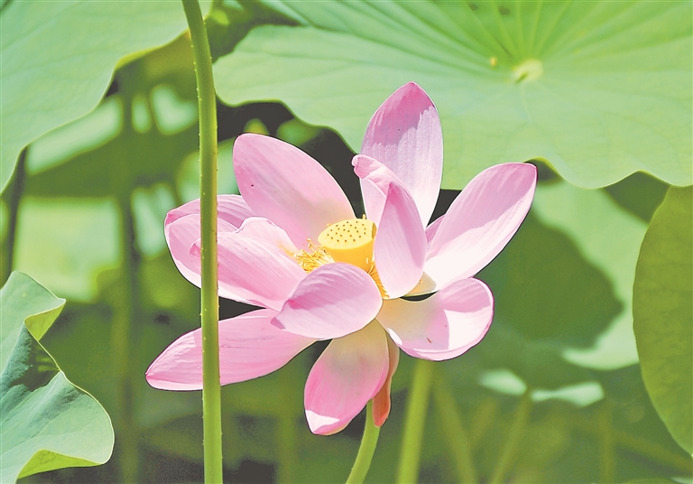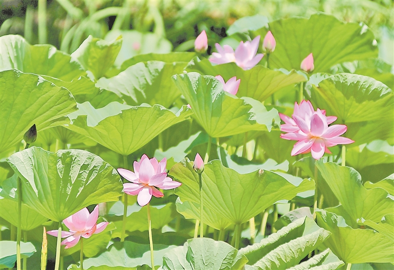 7日迎來小暑節(jié)氣,此時(shí)節(jié)也正是荷花盛放之時(shí)。哈爾濱市道里區(qū)雨陽公園內(nèi),碧綠的荷葉鋪滿池塘,含苞待放的花蕾在風(fēng)中搖曳,粉色的荷花競相綻放。