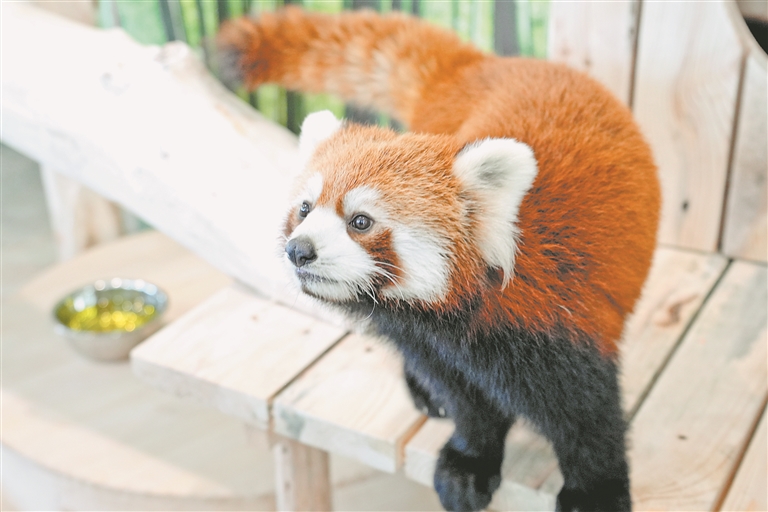 小熊貓是國家二級保護動物,野外種群數(shù)量不足萬只。保育員團隊精心準備小熊貓的飲食,專門從四川空運新鮮竹子并搭配多種營養(yǎng)餐食,確保小熊貓們健康成長。本報記者 董廣碩攝