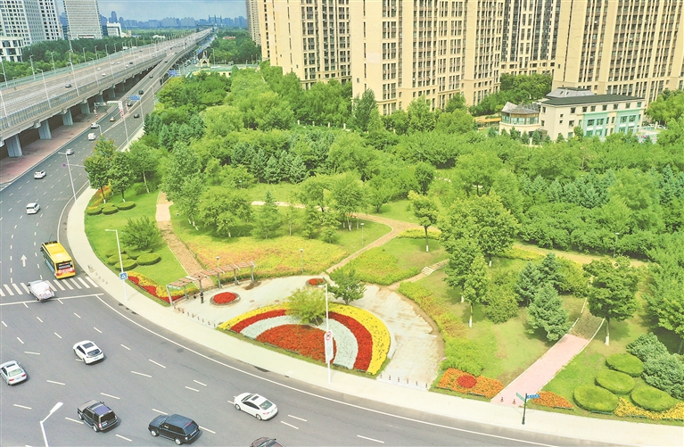 3日,哈爾濱市道里區(qū)陽明灘大道附近,行人從“口袋公園”旁走過。今年,當?shù)匦陆硕鄠€“口袋公園”,占地面積數(shù)萬平方米。公園里,樹木生長茂盛,鮮花爭奇斗艷,小道從園中穿過,道旁設有座椅、健身器材等。許多附近居民到這里休閑、賞景。